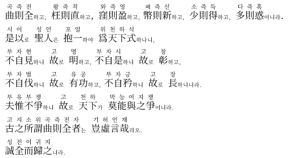 (@) 第22章 曲則全也 굽어지는 것이 온전해지고, 적은 것이 얻어진다. 억지로 하지 말라.