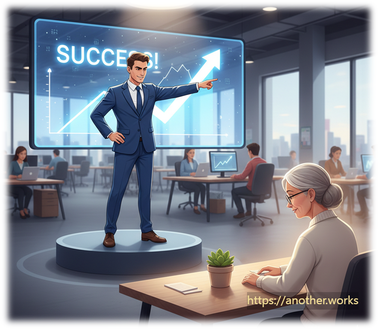 [Scene] 신규 서비스 론칭 후, 팀원들의 칭찬을 독차지하려는 매니저(A)에게, 노련한 선배(B)가 조언을 해주는 상황.