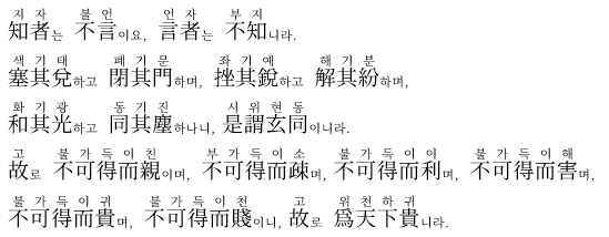 (@) 第56章 知者不言 아는 자는 말하지 않고, 말하는 자는 알지 못한다. 드러내지 않는 것이 도다.