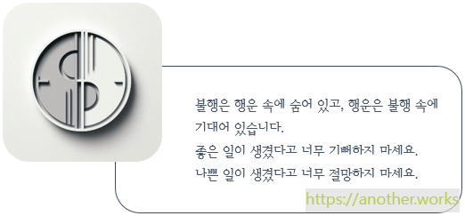 - 禍福相依(화복상의) : 재앙과 복이 서로 기대어 있음