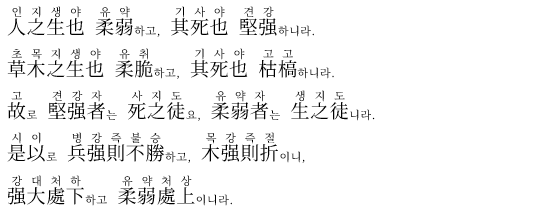(@) 第76章 柔弱勝剛 유연하고 부드러운 것이 생명이고, 뻣뻣하고 강한 것은 죽음이다.