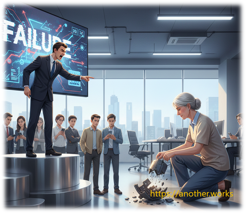 [Scene] 신임 리더(A)가 팀의 실수에 대해 책임을 회피하고 팀원들에게 전가하려 하자, 멘토(B)가 노자의 '물의 도'를 조언합니다.