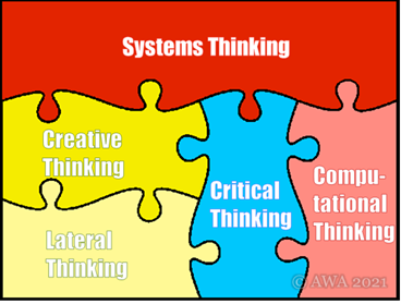 시스템은 공통 목적을 위해 함께 작동하는 부품의 그룹을 의미합니다. 시스템 사고는 구성 요소를 개별적으로 보는 것보다 구성 요소 간의 관계를 강조합니다. 이는 특정 시스템을 둘러싼 맥락, 상황 또는 환경을 고려하는 것을 의미하는 것으로 전체적인 맥락에서 시스템을 이해하는 "맥락적" 사고 또는 "총체적" 사고라고 하기도 합니다.
