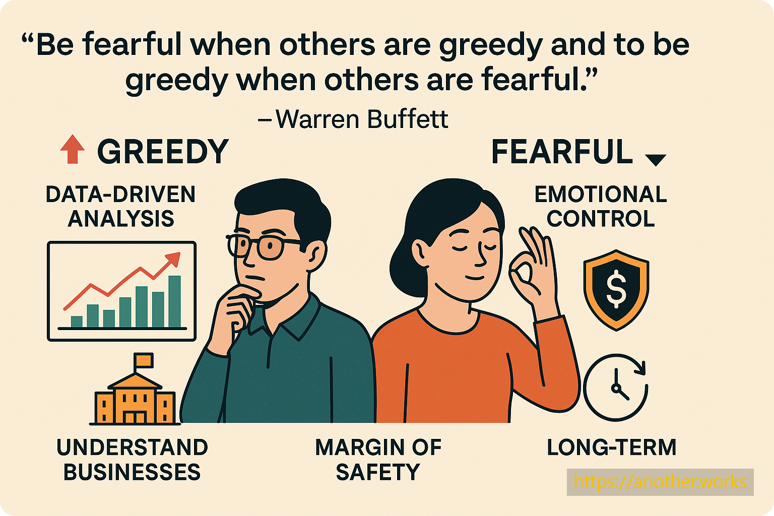 "두려움에 매도하지 말고 탐욕에 매수하지 말라"는 버핏의 명언처럼, 개인 투자자는 데이터 기반 분석감정 통제를 통해 그의 원칙을 실천할 수 있습니다. 이해할 수 있는 사업에 안전 마진을 확보하고, 장기적으로 보유하는 것이 성공의 핵심입니다[1][5].